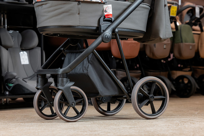 Колеса в коляске ненадувные из специального вспененного геля (гелевые). Такое колесо невозможно пробить, не требует подкачек, а ход его очень мягкий. Гелевое колесо хорошо зарекомендовало себя как в жару, так и в холод. В каждом колесе установлен двойной подшипник, что делает ход коляски беззвучным.