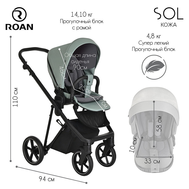 Roan Sol -Eco Кожа - новое поколение коляски, отвечающей самым высоким стандартам дизайна, безопасности и функциональности