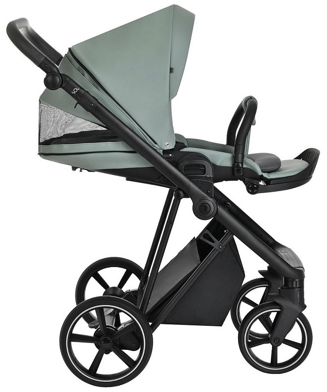 Большая полноразмерная, бескаркасная люлька, предусмотрена глубокая система вентиляции нового поколения «double Air». Отделка внутренней части люльки выполнена из хлопковой натуральной ткани, имеется дополнительный бортик для использования коляски в зимний период. Большой глубокий капор и регулировка капюшона.
