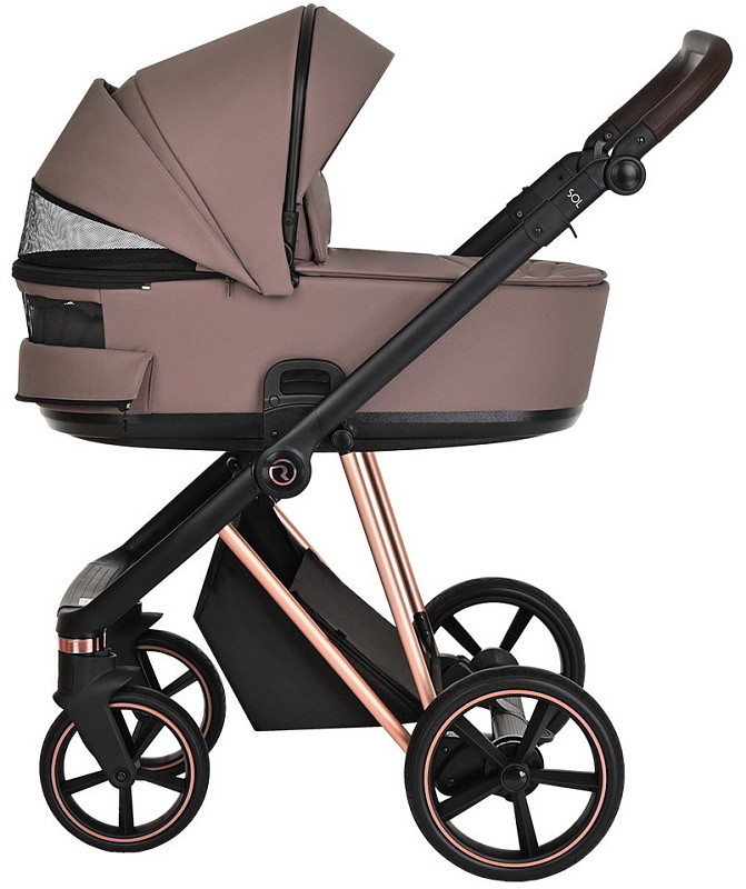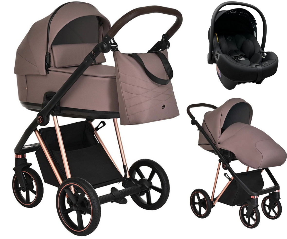 Детская коляска Roan Sol Luxury 3 в 1 с автокреслом Tutis Elo Lux EduSky Black RSL/4043 Cocoa/Rose Gold