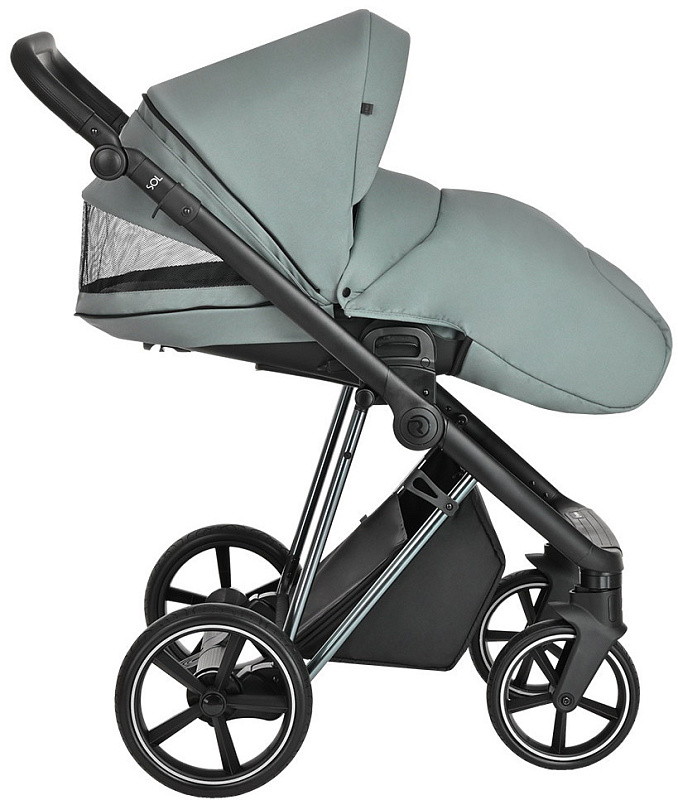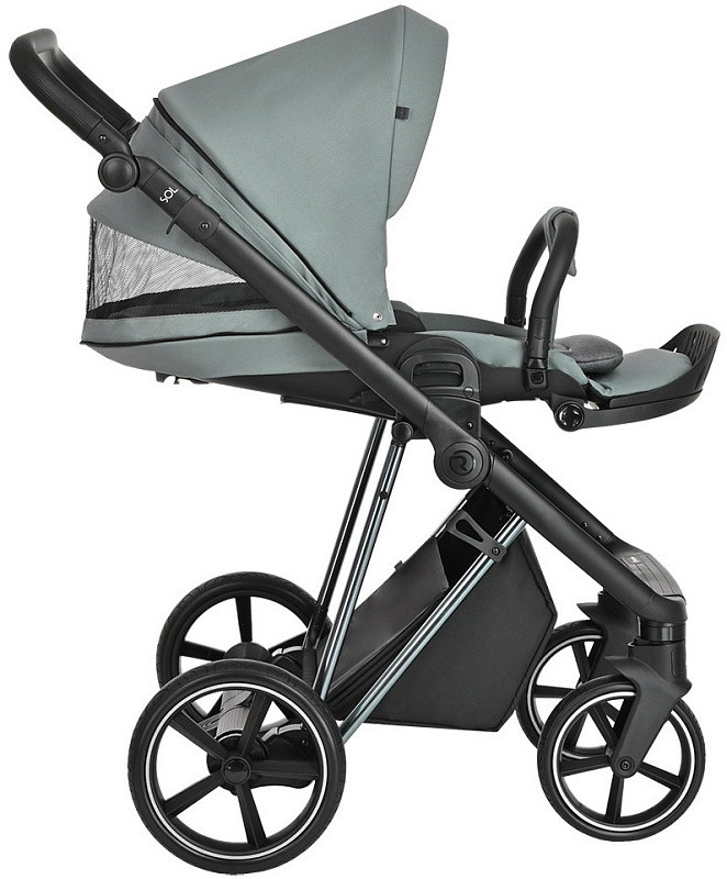 Рама в коляске Sol Luxury изготовлена из алюминия, с нанесением профессионального покрытия и укреплённого в печи под температурой.