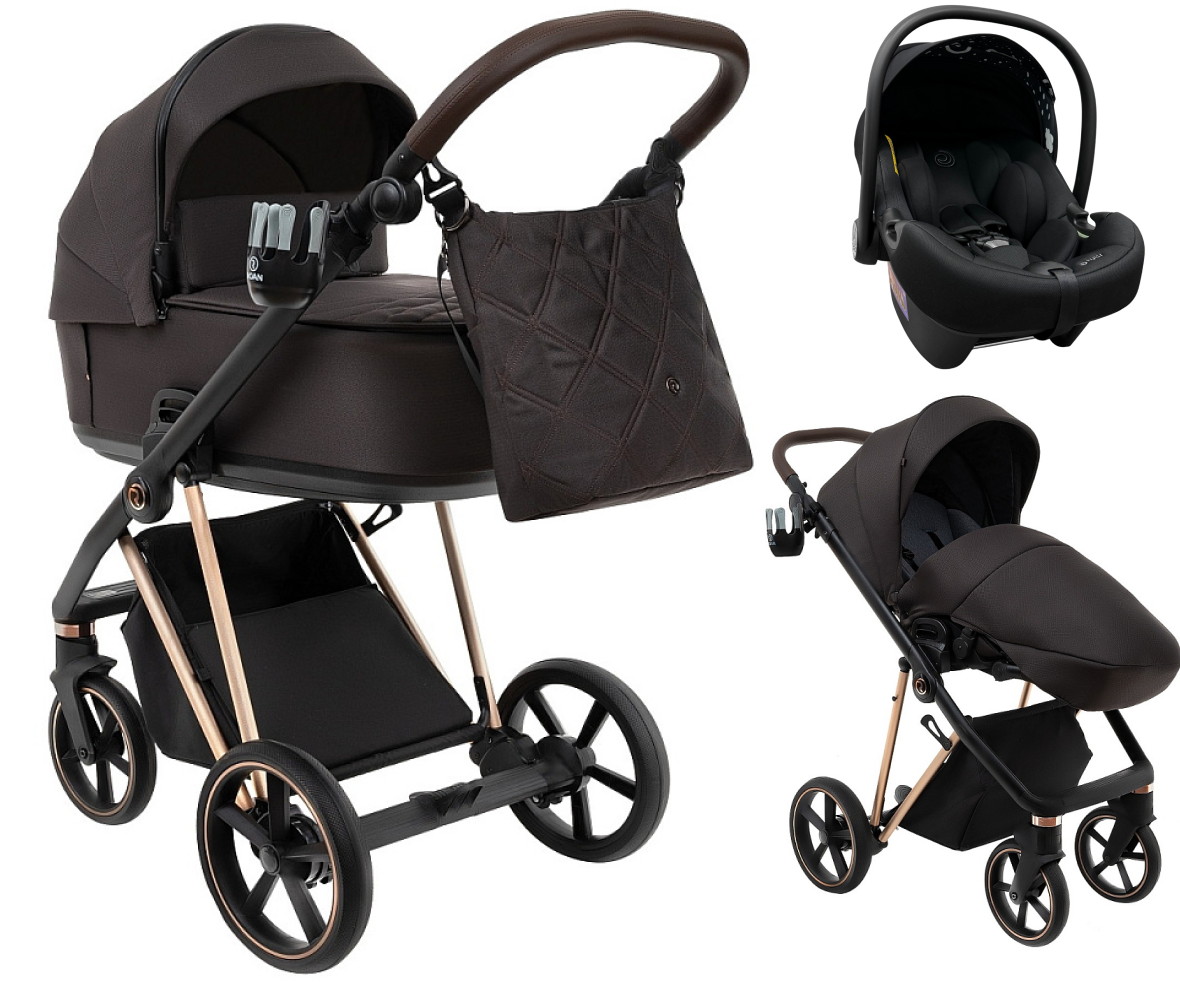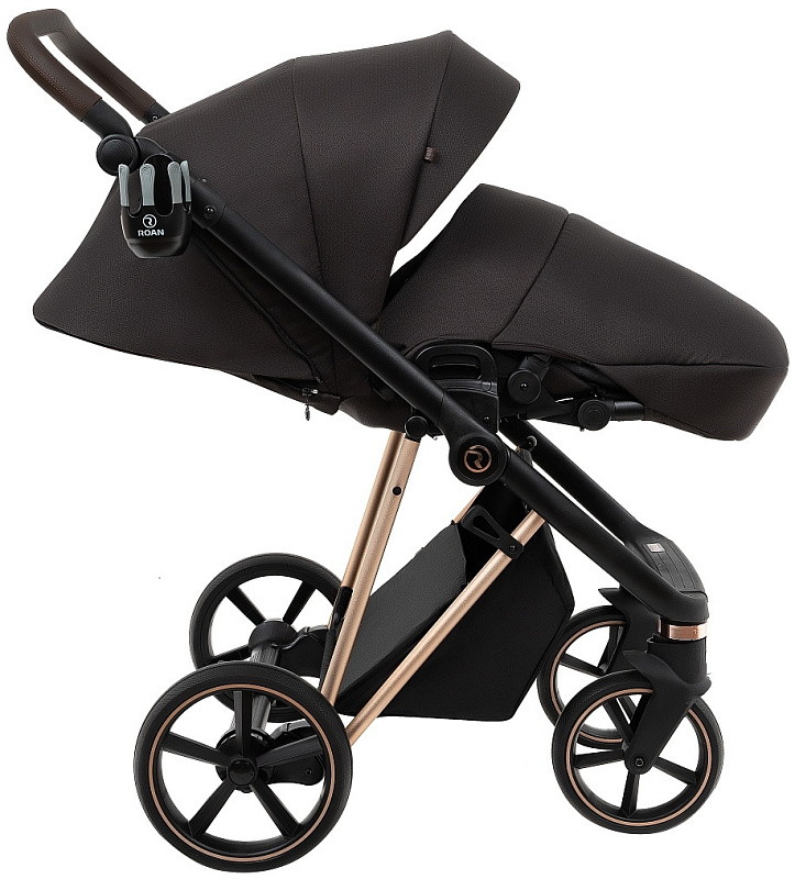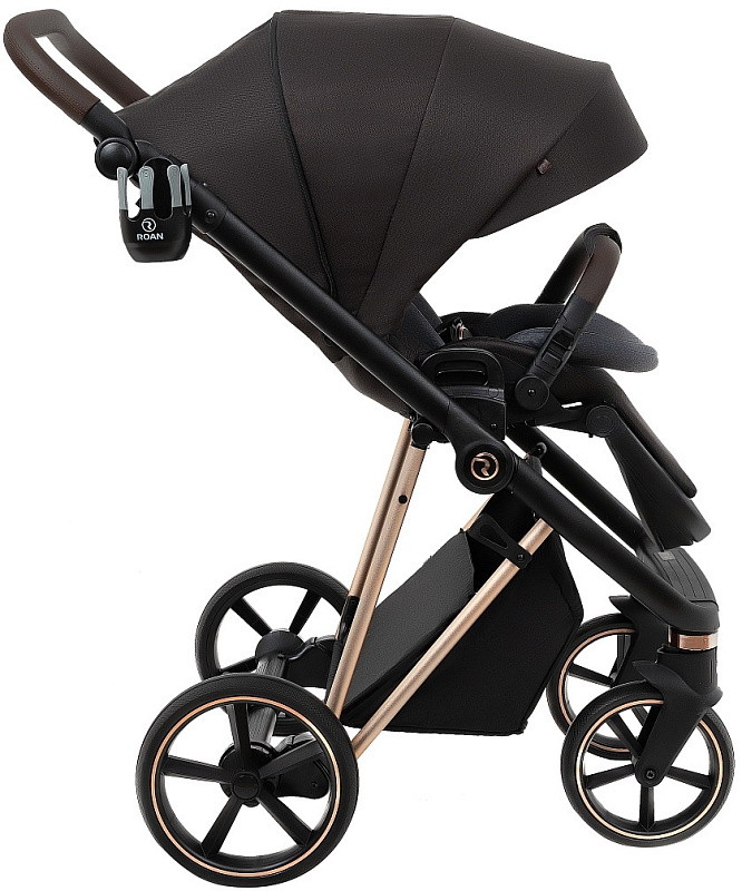 Детская коляска Roan Sol Luxury 3 в 1 с автокреслом Tutis Elo Lux EduSky Black RSL/4049 Choco/Rose Gold