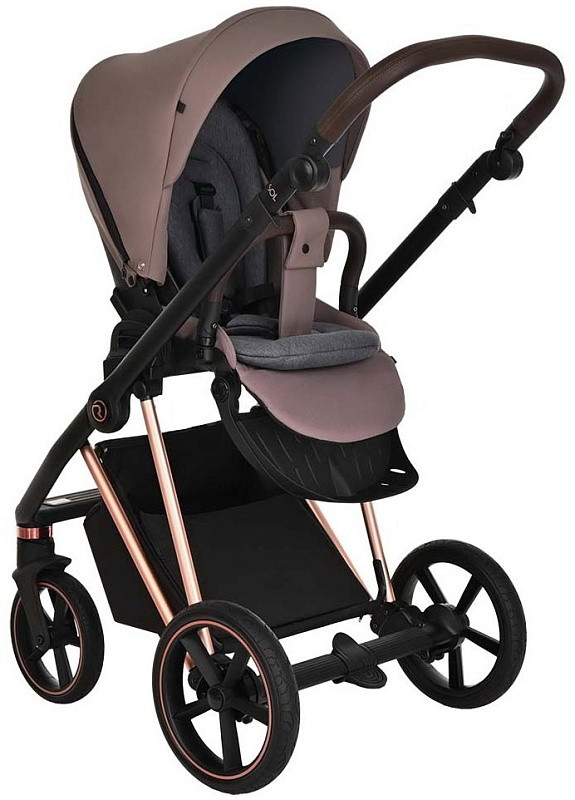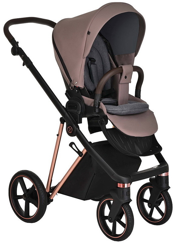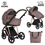 Детская коляска Roan Sol Luxury 3 в 1 с автокреслом Tutis Elo Lux EduSky Grey RSL/4043 Cocoa/Rose Gold