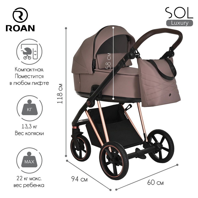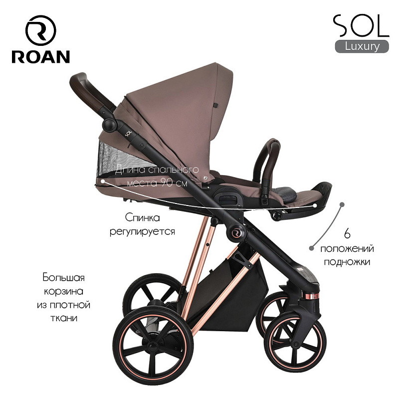 Многофункциональная модульная коляска Roan Sol Luxury– это детская коляска высокого качества в идеальном исполнении, которое заметно с первого взгляда.