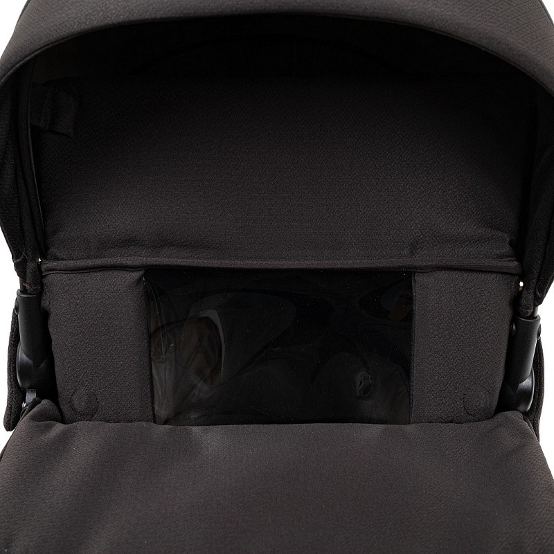Большая полноразмерная, бескаркасная люлька, предусмотрена глубокая система вентиляции нового поколения «double Air». Отделка внутренней части люльки выполнена из хлопковой натуральной ткани, имеется дополнительный бортик для использования коляски в зимний период. Большой глубокий капор и регулировка капюшона.