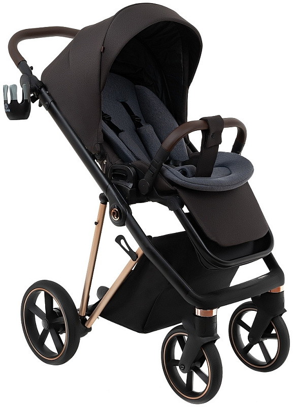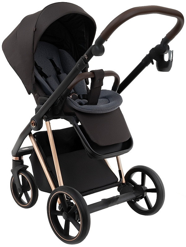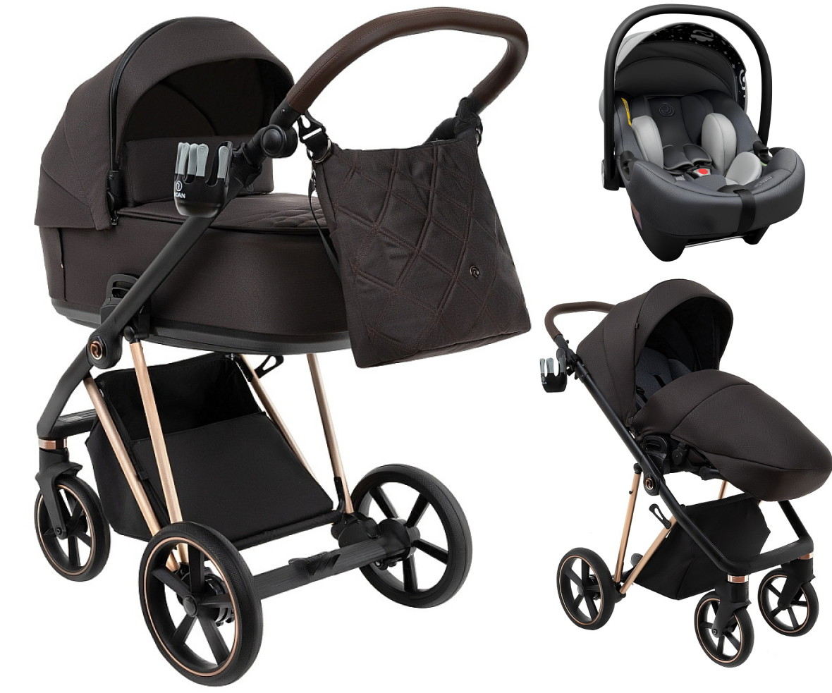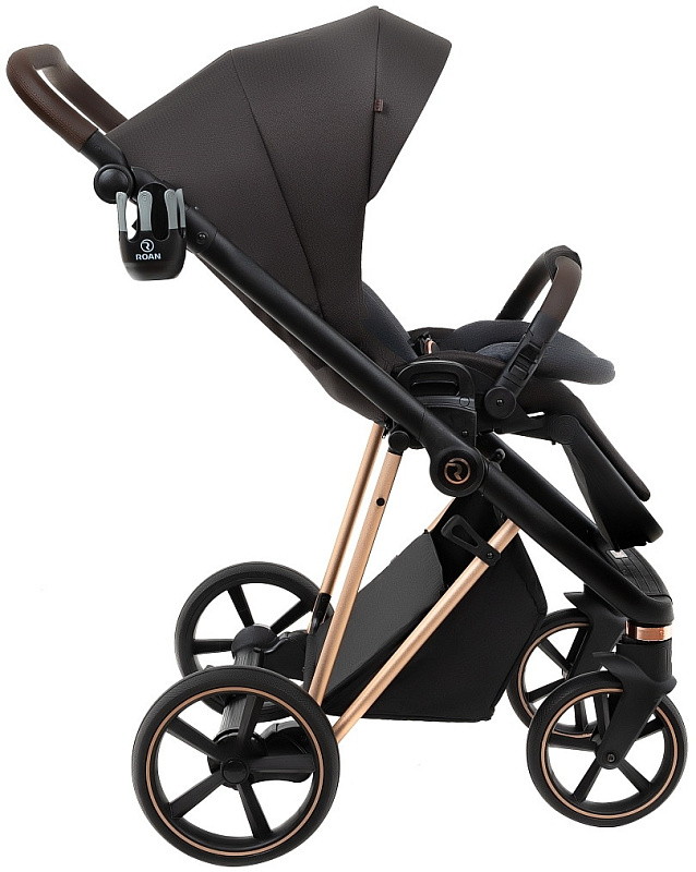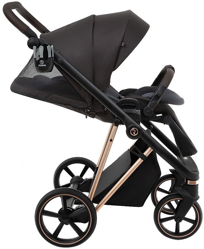 Детская коляска Roan Sol Luxury 3 в 1 с автокреслом Tutis Elo Lux EduSky Grey RSL/4049 Choco/Rose Gold