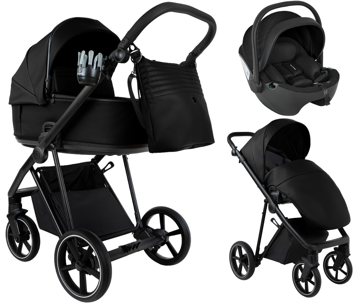 Детская коляска Roan Sol Vintage Leather 2.0 3 в 1 с автокреслом Pituso Baesa Pro Black SL/10/L Black/Black/руч.Черный