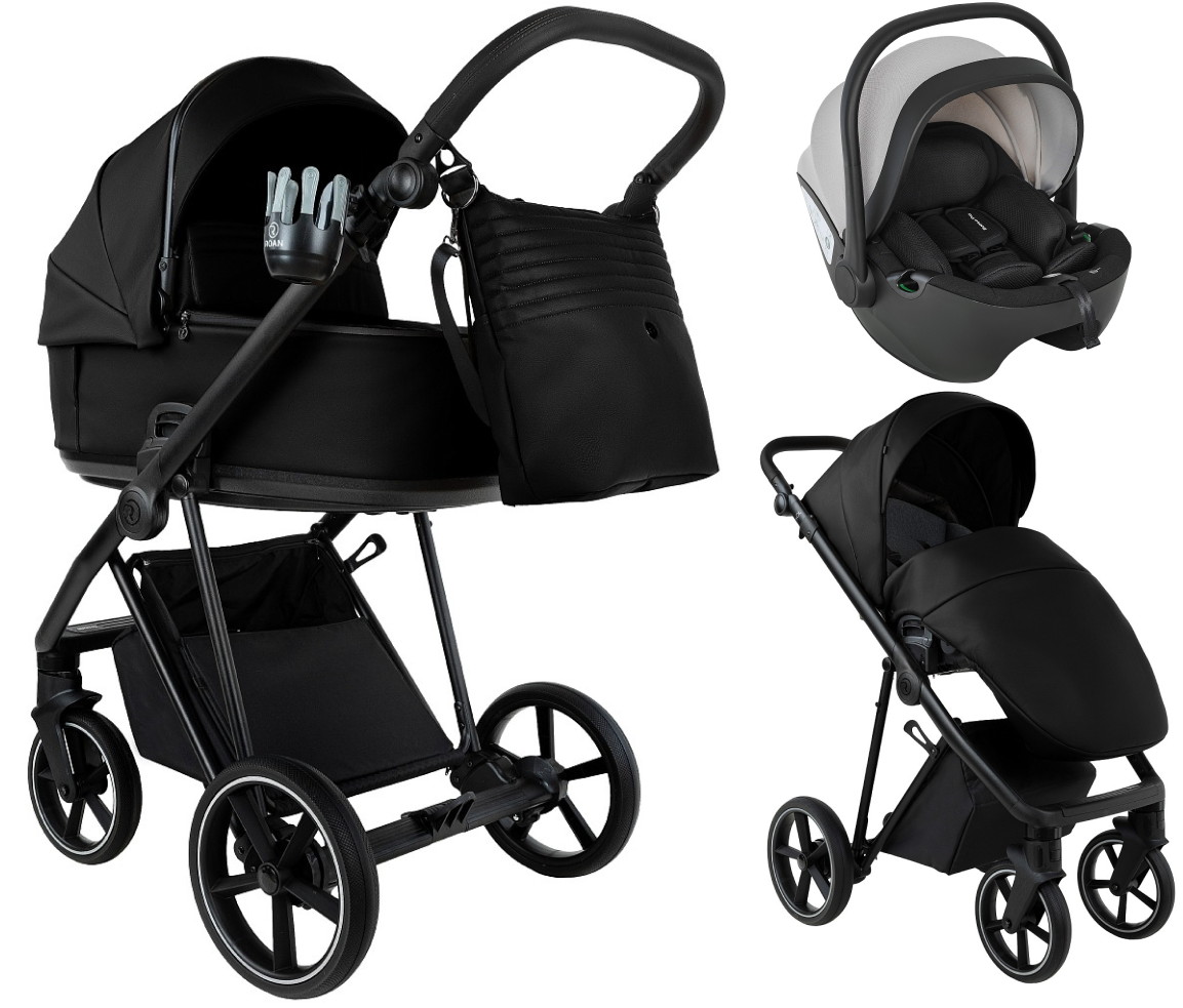 Детская коляска Roan Sol Vintage Leather 2.0 3 в 1 с автокреслом Pituso Baesa Pro Black,Beige Canopy SL/10/L Black/Black/руч.Черный