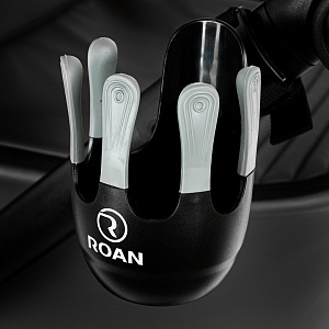 В конструкции рамы производитель Roan применяет собственные разработки деталей (узлов), например, тормозная система, механизм крепления люльки, механизм складывания и др. Это отличает данного производителя колясок от других фирм, которые используют универсальные узлы во всех колясках разных моделей.
