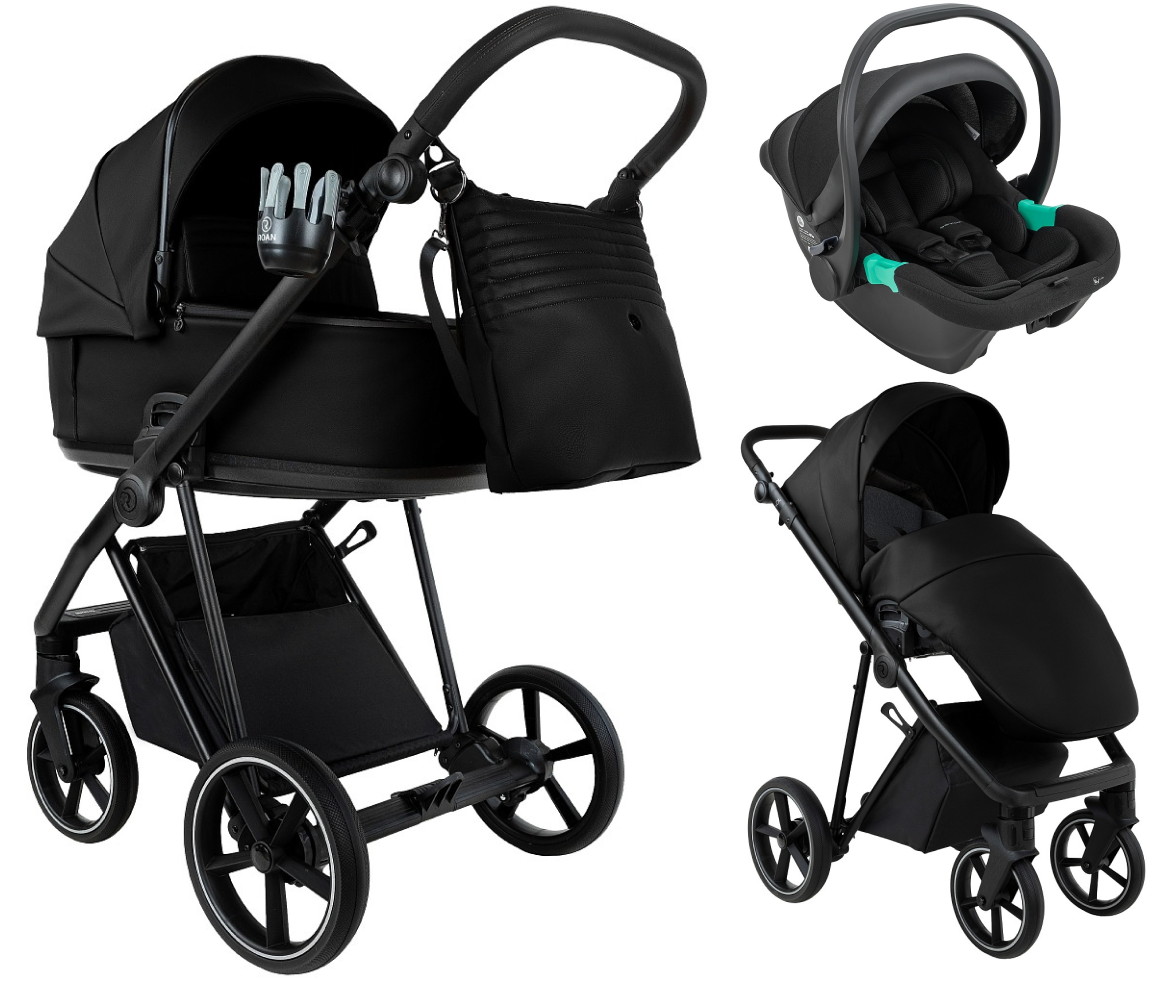 Детская коляска Roan Sol Vintage Leather 2.0 3 в 1 с автокреслом Pituso Santiso Pro Black SL/10/L Black/Black/руч.Черный