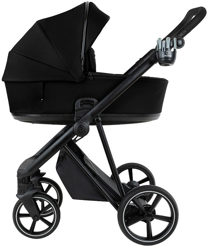 В конструкции рамы производитель Roan применяет собственные разработки деталей (узлов), например, тормозная система, механизм крепления люльки, механизм складывания и др. Это отличает данного производителя колясок от других фирм, которые используют универсальные узлы во всех колясках разных моделей.
