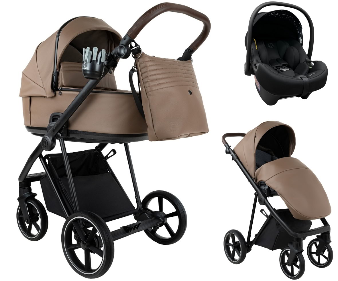 Детская коляска Roan Sol Vintage Leather 2.0 3 в 1 с автокреслом Tutis Elo Lux EduSky Black SL/11/L Camel/Black/руч.Тем.коричневый