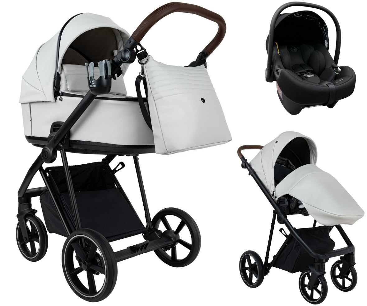 Детская коляска Roan Sol Vintage Leather 2.0 3 в 1 с автокреслом Tutis Elo Lux EduSky Black SL/12/L Island Stone /Black/ руч.Коричневый