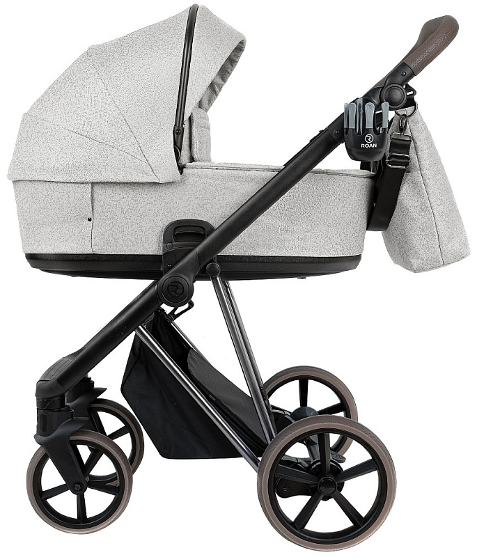 В конструкции рамы производитель Roan применяет собственные разработки деталей (узлов), например, тормозная система, механизм крепления люльки, механизм складывания и др. Это отличает данного производителя колясок от других фирм, которые используют универсальные узлы во всех колясках разных моделей.