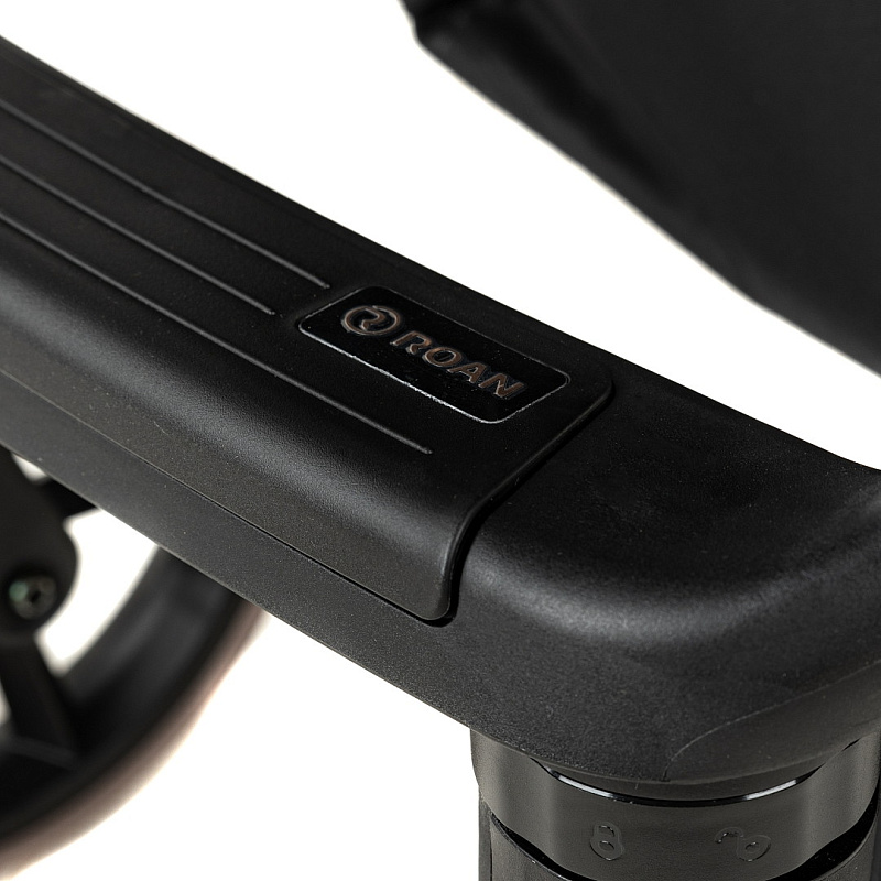 В конструкции рамы производитель Roan применяет собственные разработки деталей (узлов), например, тормозная система, механизм крепления люльки, механизм складывания и др. Это отличает данного производителя колясок от других фирм, которые используют универсальные узлы во всех колясках разных моделей.