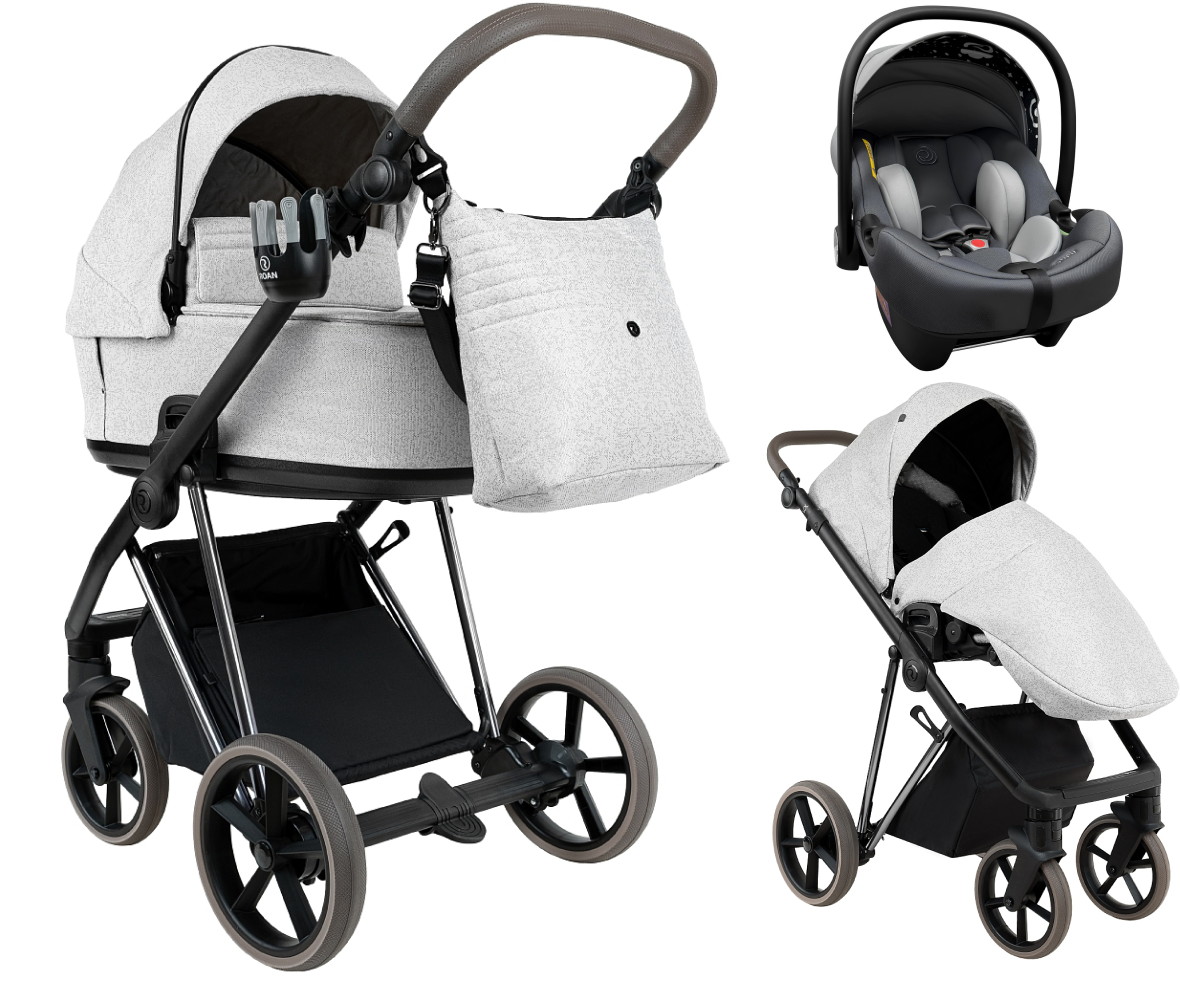 Детская коляска Roan Sol Vintage Luxury 2.0 3 в 1 с автокреслом Tutis Elo Lux EduSky Grey PIX/50/L Pixel/Light/Black/руч.Cappuccino