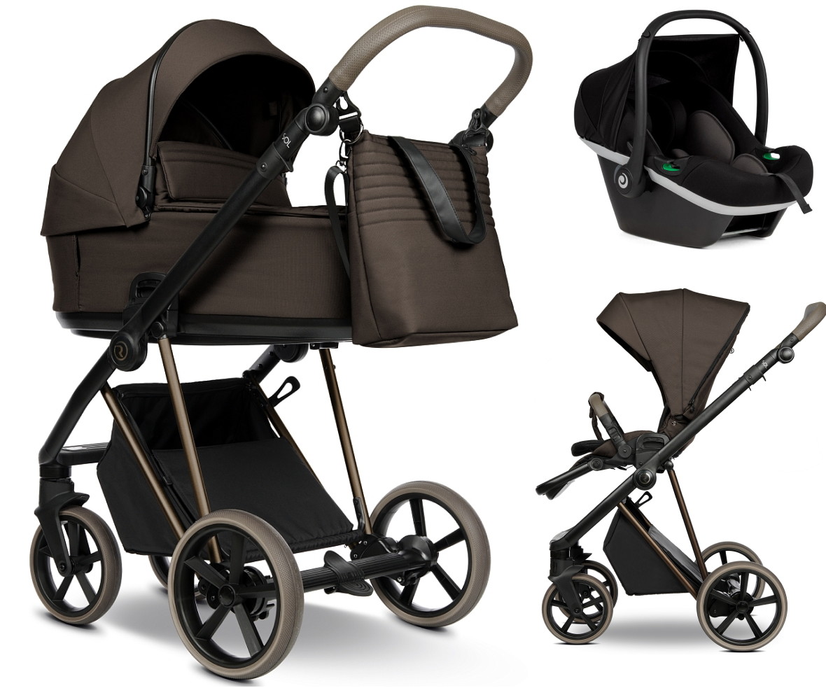Детская коляска Roan Sol Vintage Luxury 2.0 3 в 1 с автокреслом Tutis Elo Black VIN 04/TC Turkish Coffe/Bronze/руч.Cappuccino