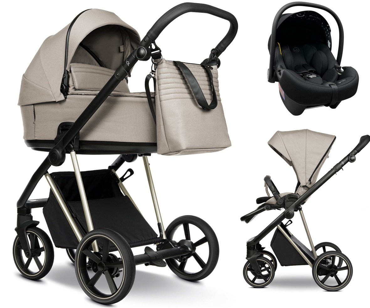 Детская коляска Roan Sol Vintage Luxury 2.0 3 в 1 с автокреслом Tutis Elo Lux EduSky Black VIN 06/HZ Hazel/Champagne/руч.Black
