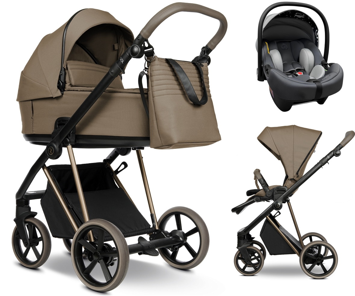 Детская коляска Roan Sol Vintage Luxury 2.0 3 в 1 с автокреслом Tutis Elo Lux EduSky Grey VIN 03/MM Mocha Mousse/Cappuccino/руч.Cappuccino