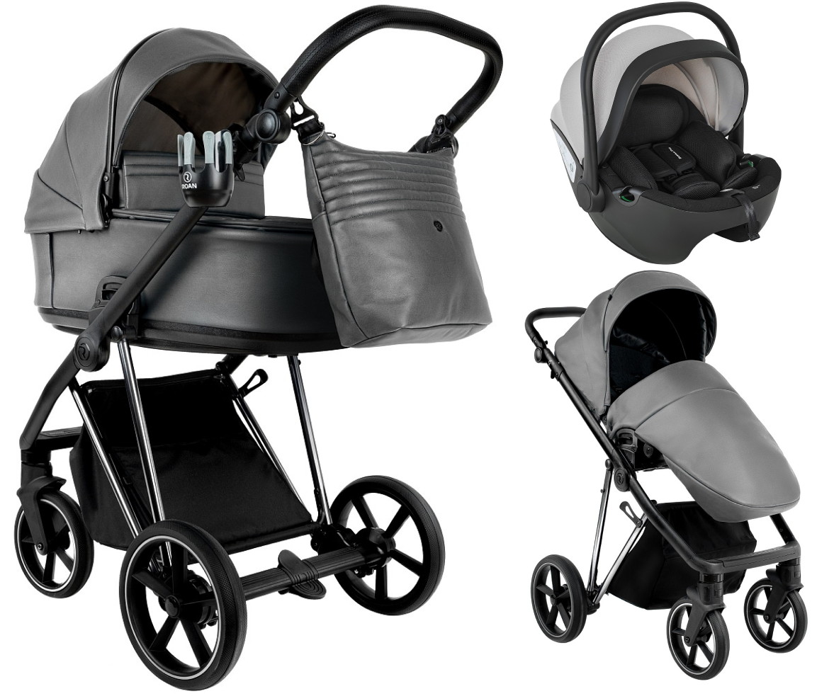 Детская коляска Roan Sol Vintage Luxury Leather 2.0 3 в 1 с автокреслом Pituso Baesa Pro Black,Beige Canopy VEGA88DB Glacier Gray/Nickel/руч.Black