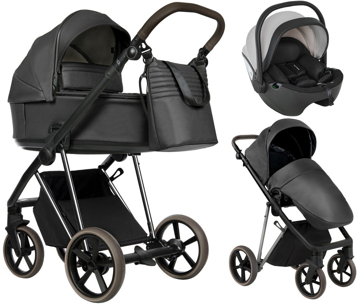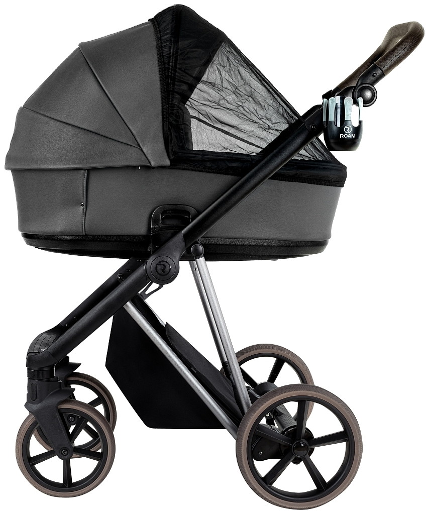 Детская коляска Roan Sol Vintage Luxury Leather 2.0 3 в 1 с автокреслом Pituso Baesa Pro Black,Beige Canopy VEGA99DB Woodland Gray/Nickel/руч.Cappuccino