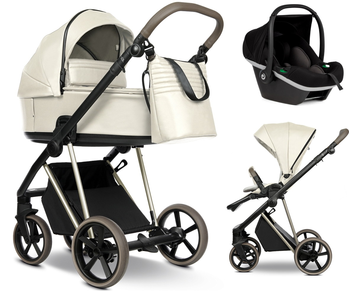 Детская коляска Roan Sol Vintage Luxury Leather 2.0 3 в 1 с автокреслом Tutis Elo Black VEGA01DB Butter Cream/Champagne/руч.Cappuccino