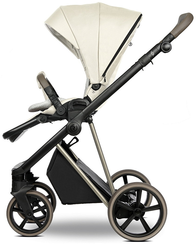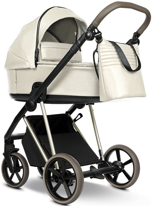 Детская коляска Roan Sol Vintage Luxury Leather 3 в 1 с автокреслом Tutis Elo Lux EduSky Black VEGA01DB Butter Cream/Champagne/руч.Cappuccino