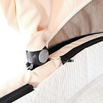 - Люлька, имеющая размеры 70 х 32 х 23 см, обеспечивает достаточно пространства для комфортного размещения малыша, независимо от его роста и комплекции. Капор люльки оснащён вентиляционным окошком, закрывающимся на замок и имеющим москитную сетку, что обеспечивает необходимую циркуляцию воздуха в тёплую погоду. Для удобства родителей предусмотрено смотровое окошко в накидке, позволяющее следить за состоянием малыша. Внутренняя отделка люльки выполнена из высококачественного 100% хлопка и дополнена молнией с карманом для мелочей.