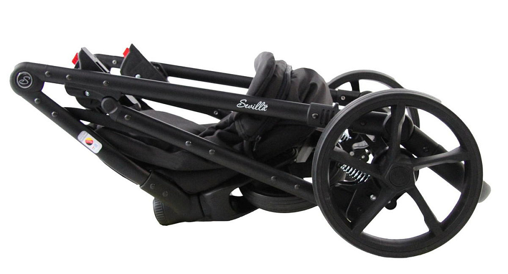 - Коляска оснащена гелевыми колёсами на подшипниках, которые не требуют обслуживания, а её надёжная тормозная система EASY STOP активируется простым нажатием на педаль. Поворотные передние колёса обеспечивают отличную маневренность, а фиксация передних колёс позволяет удобно двигаться по прямой. Люлька и прогулочный блок легко устанавливаются на раму благодаря инновационной системе One Click, а сама рама складывается в компактный книжный формат.
