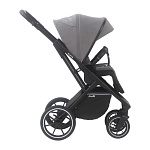 Коляска имеет простой и надежный механизм крепления One Click, который позволяет легко и быстро устанавливать и снимать люльку или прогулочный блок.