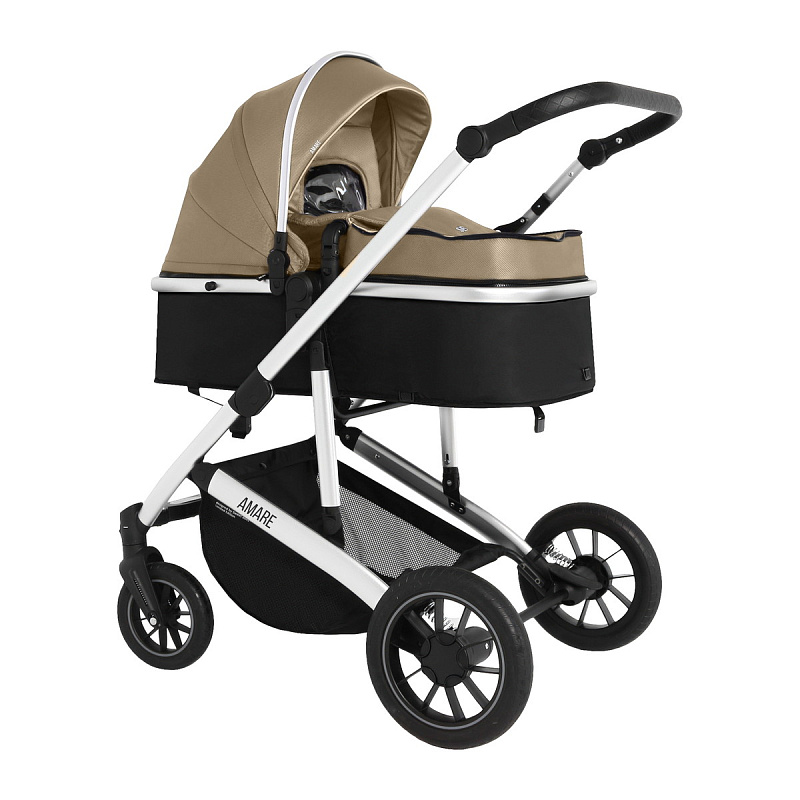 Регулируемые пятиточечные ремни безопасности, ножной тормоз, козырёк от солнца и ветра, большая корзина для покупок и теплый чехол на ножки - все это делает Sweet Baby Amare 3 в 1 не только стильной, но и безопасной и функциональной коляской для вашего малыша.