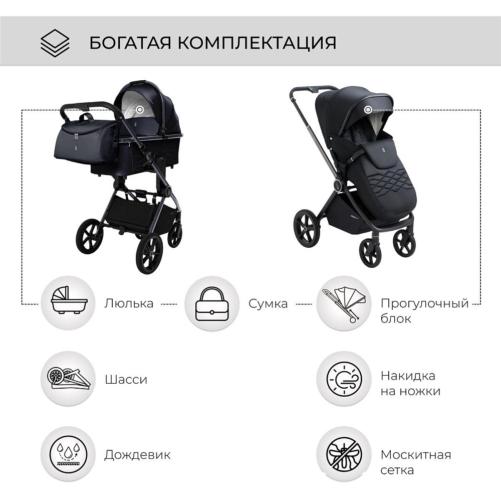 Детская коляска Sweet Baby Elegante 2 в 1 Chrome Black