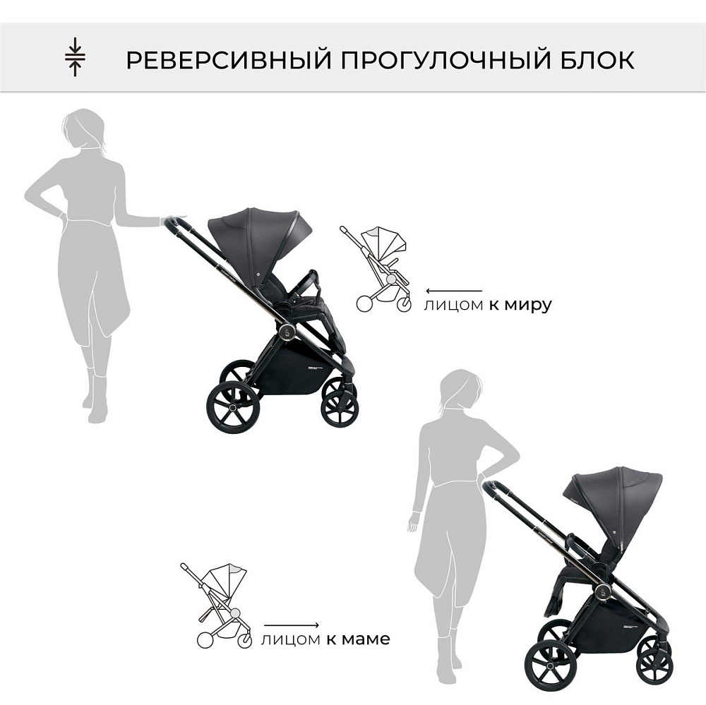 -установить прогулочный блок на шасси также легко, как по ходу движения (лицом к родителю), так и лицом к миру;