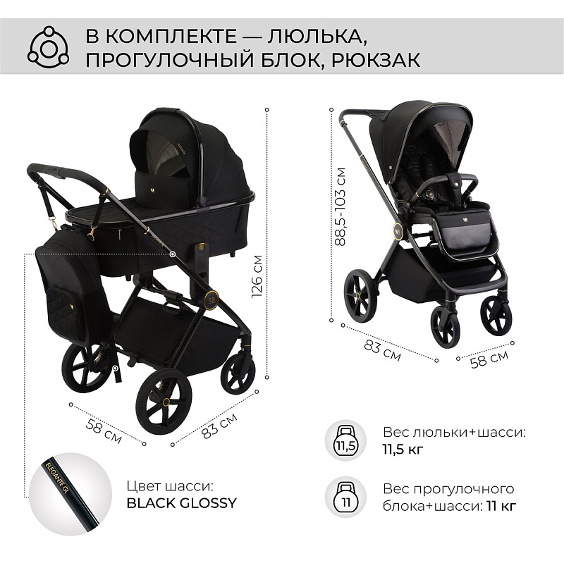 Детская коляска Sweet Baby Elegante 2 в 1 GL Black