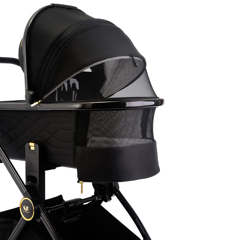 -система циркуляции воздуха в жаркие летние дни на капоре люльки, у изголовья и у ножек есть москитные сетки, спрятанные под молнией;