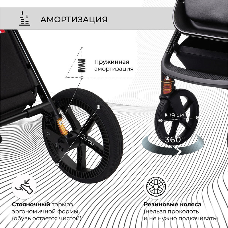 Диаметр колес: Задние- 26 см, Передние- 19 см