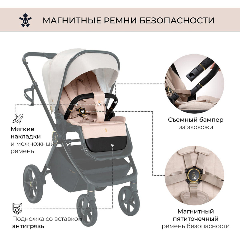 -благодаря пятиточечными ремням безопасности с магнитным замком ваш малыш будет всегда в безопасности;