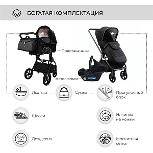 Детская коляска Sweet Baby Elegante 3 в 1 Chrome Black