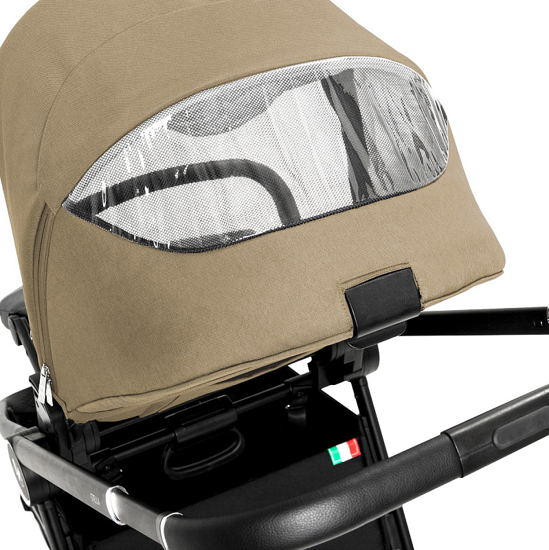 - бесшумный регулируемый капор из непромокаемой ткани с дополнительным отсеком и козырьком