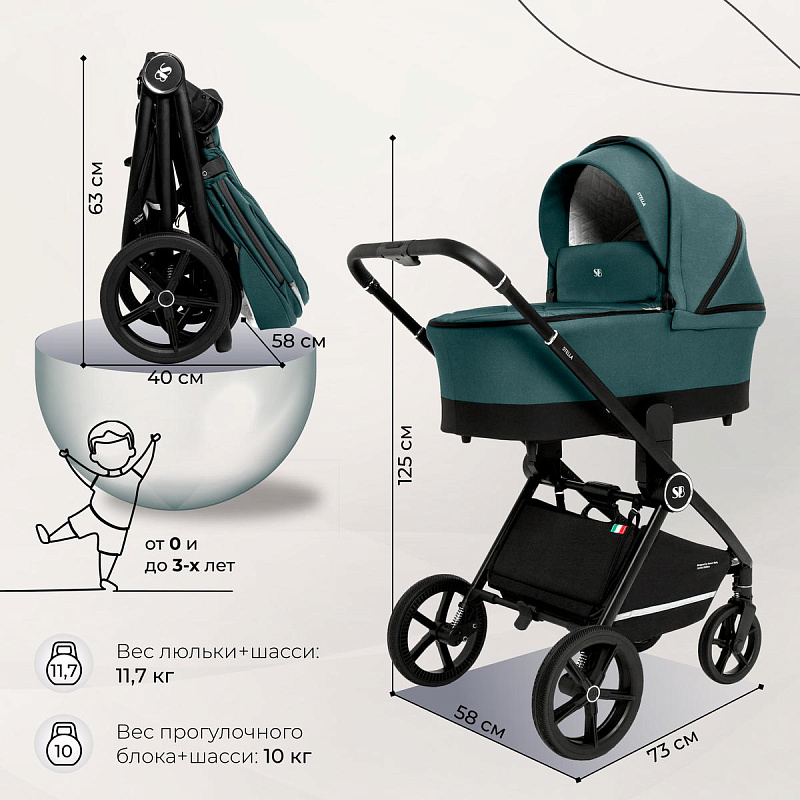 Детская коляска Sweet Baby Stella 3 в 1 Green