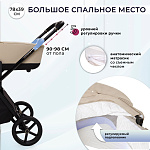 Просторная люлька: размер 78х39 см, анатомический матрасик, регулировка капюшона и козырёк для защиты от солнца, дождя и ветра.
