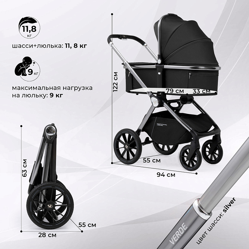 Детская коляска Sweet Baby Verde Silver 2 в 1 427449 Black