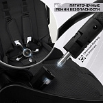- Пятиточечные ремни безопасности с мягкими накладками, регулируемая спинка и подножка;