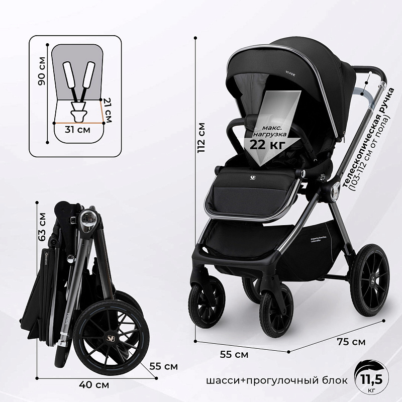 - Удобное сложение прогулочного блока с шасси для компактного хранения или транспортировки.