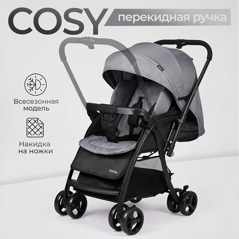 Обновлённая модель коляски Tomix Cosy V3 с перекидной ручкой — идеальный транспорт для вашего малыша. Благодаря перекидной ручке вы можете менять направление движения коляски прямо во время прогулки, защищая ребёнка от ветра и дождя. Увеличенный капюшон и тёплый чехол для ног делают эту коляску подходящей для любого сезона.