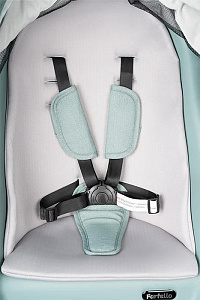 8. Безопасность во время движения обеспечивают регулирующиеся по высоте пятиточечные ремни безопасности, а также бампер, который отстегивается с любой стороны для быстрого размещения ребенка в коляске.