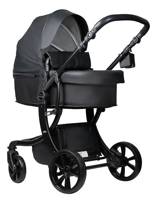 1. Коляска - трансформер Aimile Spring подходит для круглогодичного использования, капюшон и полог для люльки выполнен из экокожи, она проста в уходе (чтобы привести внешний вид в порядок, достаточно протереть влажной салфеткой).