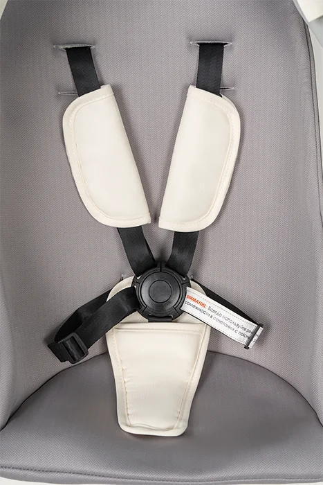 8. Безопасность во время движения обеспечивают регулирующиеся по высоте пятиточечные ремни безопасности, а также бампер, который отстегивается с любой стороны для быстрого размещения ребенка в коляске.