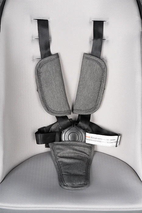 8. Безопасность во время движения обеспечивают регулирующиеся по высоте пятиточечные ремни безопасности, а также бампер, который отстегивается с любой стороны для быстрого размещения ребенка в коляске.