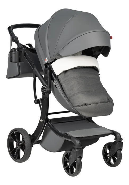 1. Коляска - трансформер Aimile Spring подходит для круглогодичного использования, капюшон и полог для люльки выполнен из экокожи, она проста в уходе (чтобы привести внешний вид в порядок, достаточно протереть влажной салфеткой).
